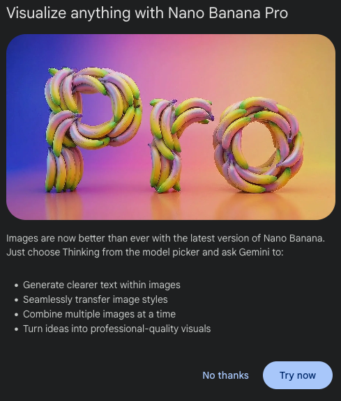 早上起来打开 Gemini 发现 Nano Banana Pro 更新了,那当然是 Try now 啊!